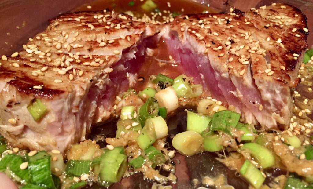 The three species of tuna that Americans enjoy eating the most are Albacore, Yellowfin (the Hawaiian word is Ahi) and Bluefin (the Japanese word is Maguro). Albacore is the lightest in flavor and texture, with large meaty flakes. The ubiquitous canned version is called “white tuna” but doesn’t come close to the flavor of freshly caught, which is exquisite. The word Ahi has become popular among restaurants because of this dish, Seared Ahi. Seared but left pink in the middle of the filet, it is the best of both worlds, crispy and explosively tasty and umami on the outside, and lush and sashimi on the inside. Bluefin is wildly popular around the world as sushi, called Maguro on the menu, and is the richest, most dense, and most expensive.