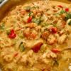 Spanish Chorizo is a dry salami made from fermented, cured and smoked course ground pork and seasoned with smoked paprika. (Chorizo is available on Amazon). The gorgeous red color comes from simmering Spanish chorizo in a high quality olive oil until the oil is deeply flavored and colored from the spicy paprika in the chorizo. Then the chicken pieces are braised in this oil until the fats in the chicken skin join with the oils in the pan to become vibrantly red. The chicken is then removed from the pan and set aside. Garlic, onion and peppers are added to this amazing oil and simmered until fragrant and married, and then chicken bone broth is added to deglaze, and then cream is added later to create a gorgeous gravy.